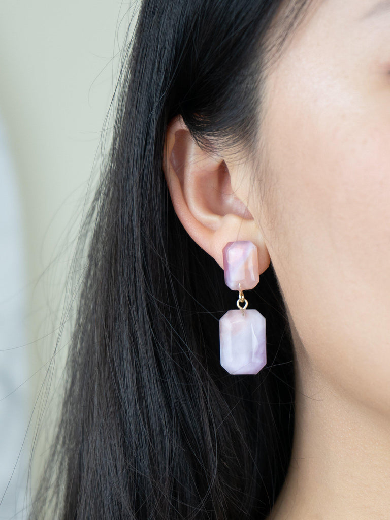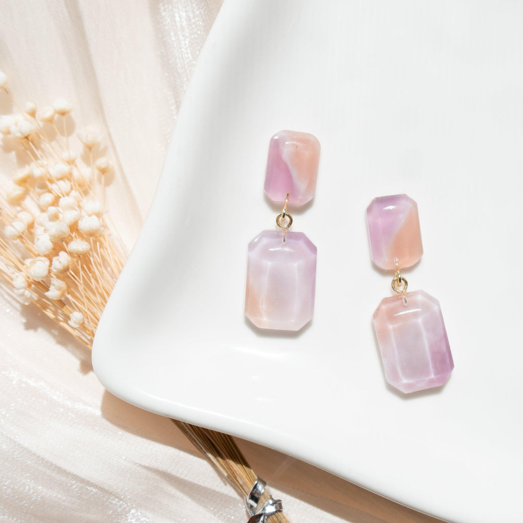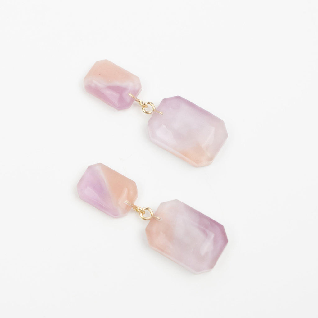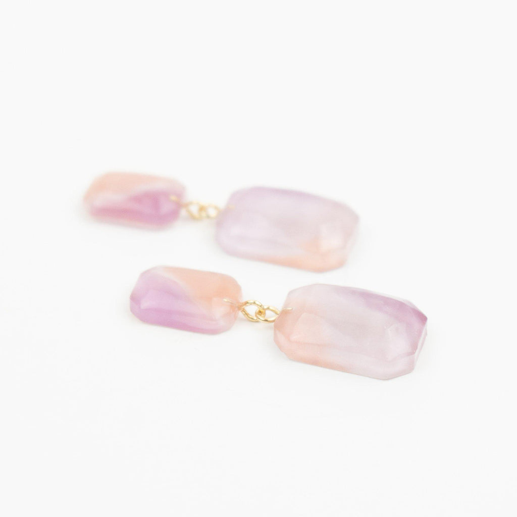 These earrings feature a gradient smoke effect of lilac and rose fog.