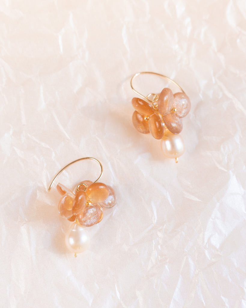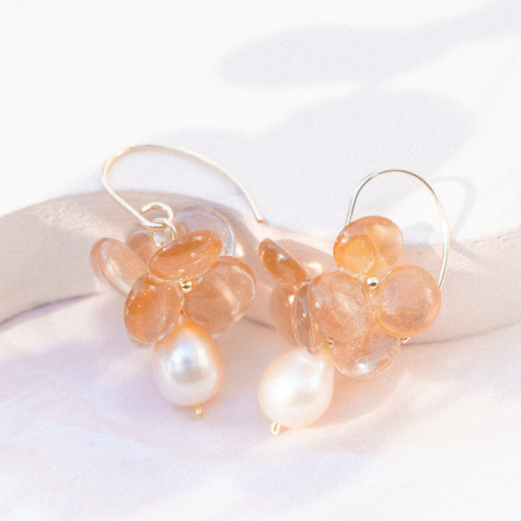 New colour added: Burnt orange flowers with teardrop freshwater pearls.
