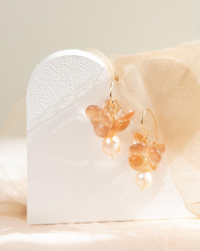 Handmade with premium Japanese UV resin. Sophisticated and tarnish-resistant 14k gold-plated brass hardware.