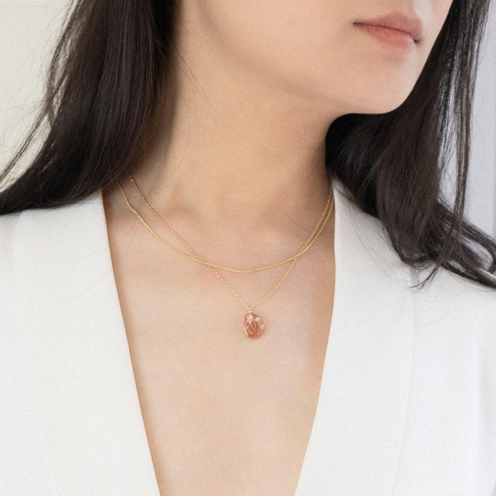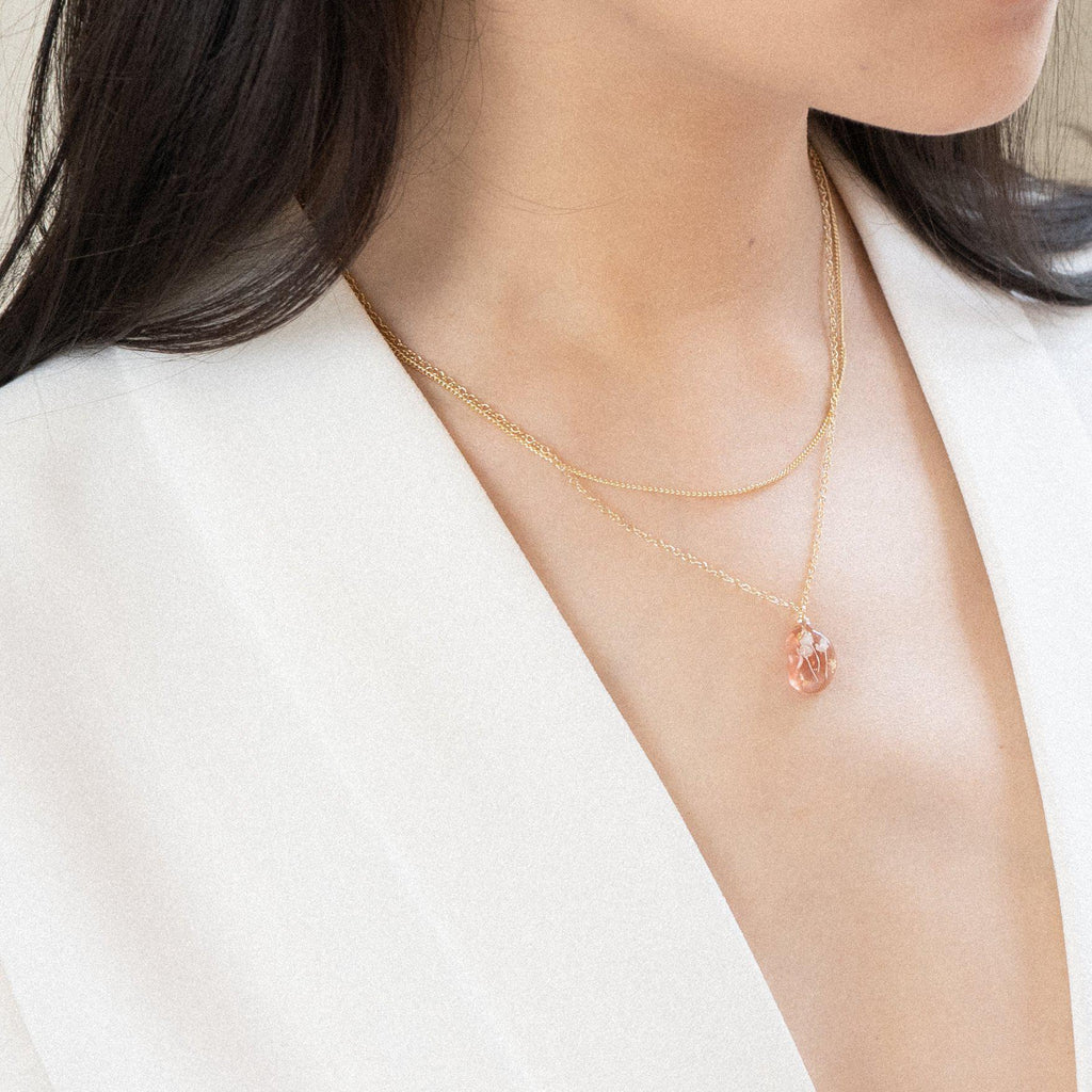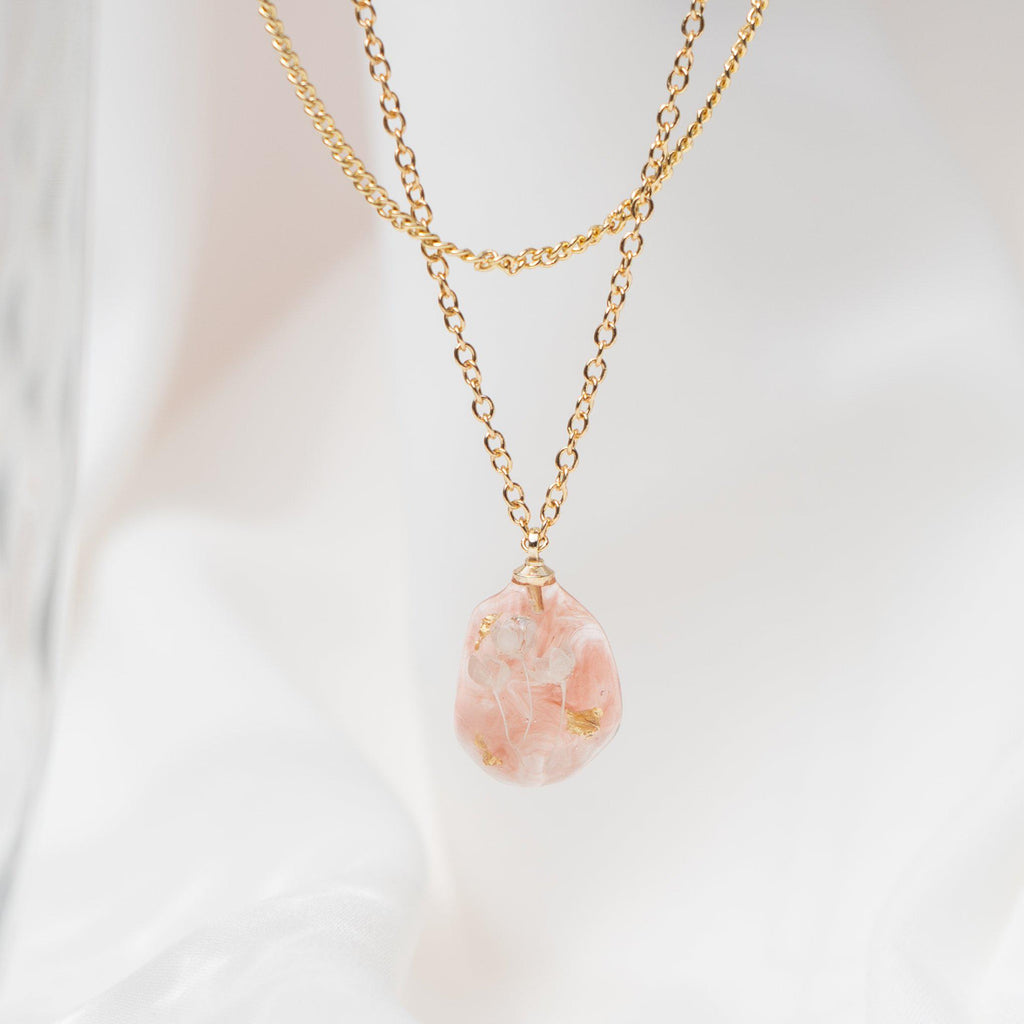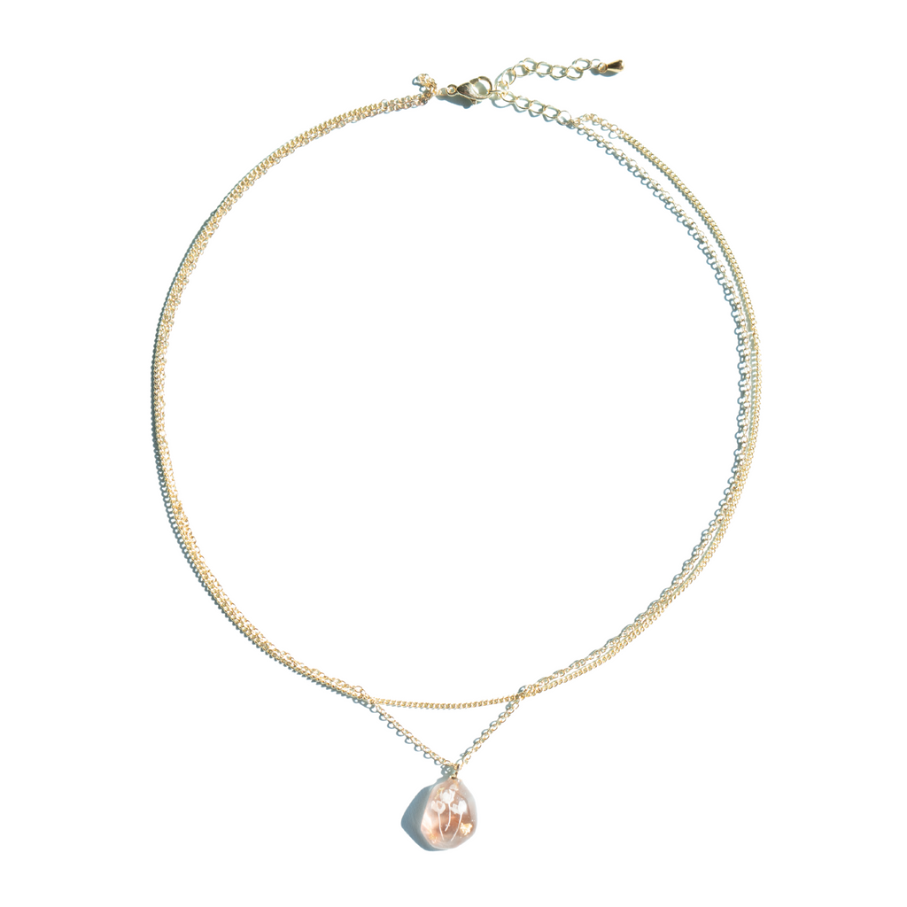 This simple yet unique necklace features an irregular rock shape, with real dried mini baby's breath encased. Meticulously curated burnt orange colour.