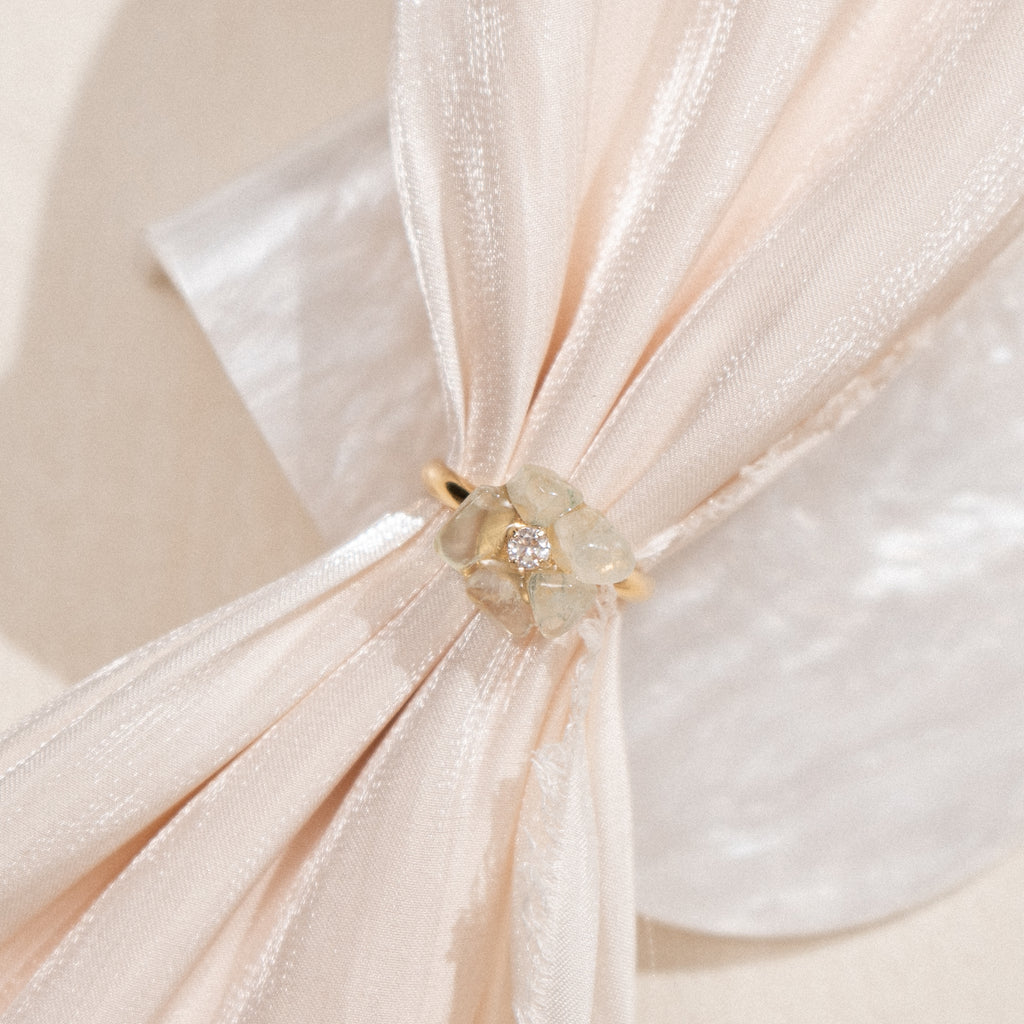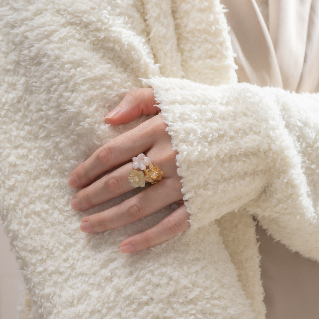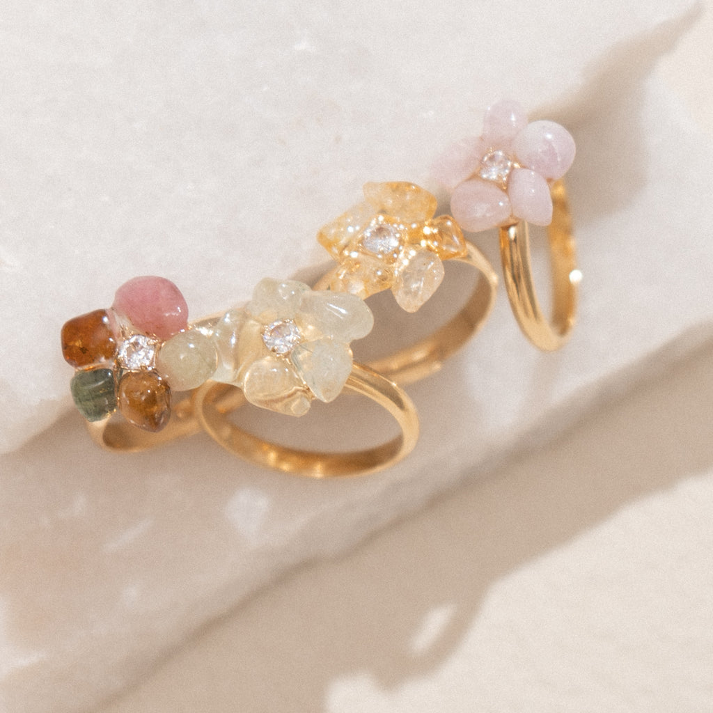 These cute and dainty rings feature a floral-shaped gem made with natural semi-precious stones and a premium zircon in the middle. Choose from multi-colour tourmaline, morganite, citrine and prehnite. They are gorgeous on their own as well as going perfectly well with other stackable rings. The stones are meticulously selected that are uniform in colour, shape and purity.